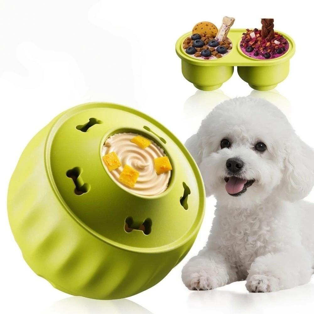 Food-grade Silicone DIY 2-grid Food Mold for Dog Dental Health Durable Puppy Swing Leak Feeder Non-Toxic Easy Clean