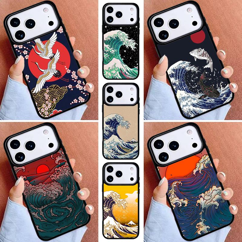 Japanese Wave Art Phone Case for iPhone 16e 15 14 13 12 17 Pro Max Plus Air 17pro Cover Coque