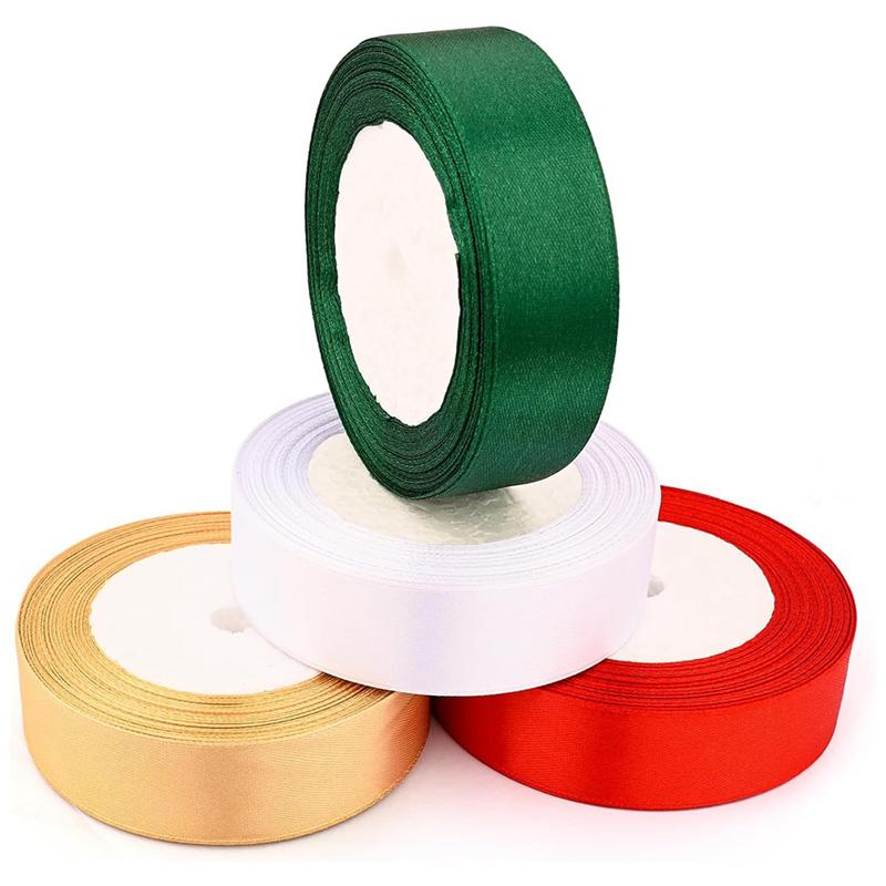 Good-Christmas Ribbon, 4 Rolls 100 Yards Christmas Satin Ribbon Gift Wrapping Ribbon Double Faced Solid Satin Ribbon