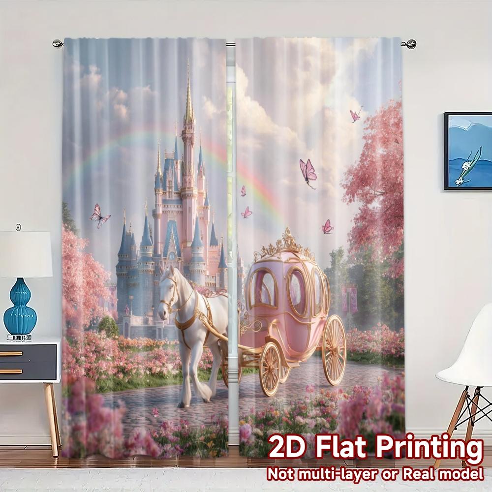 Set Of 2 Modern Flat Printing Curtains Without Rod Fantasy Kingdom Ride Fashionable Durable Polyester Fabric Curtain