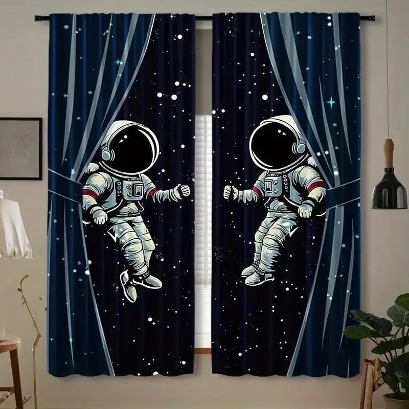 Spaceman Graphic Curtains Polyester Window Drapes Kids Room Living Blackout Set Of 2 Made With Rod Pocket Area Decor