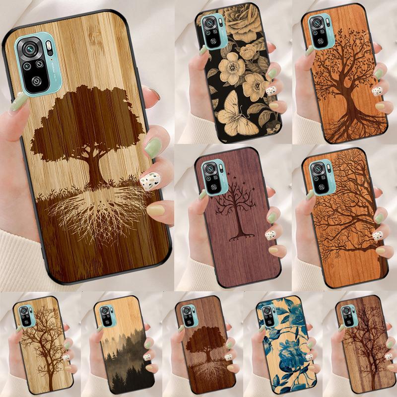 Tree Flower Bamboo Wood Cover For Xiaomi Redmi Note 13 Pro 14 12 11 9 10 9S 10S 11S 12S Redmi 10C 12C 13C 14C Case