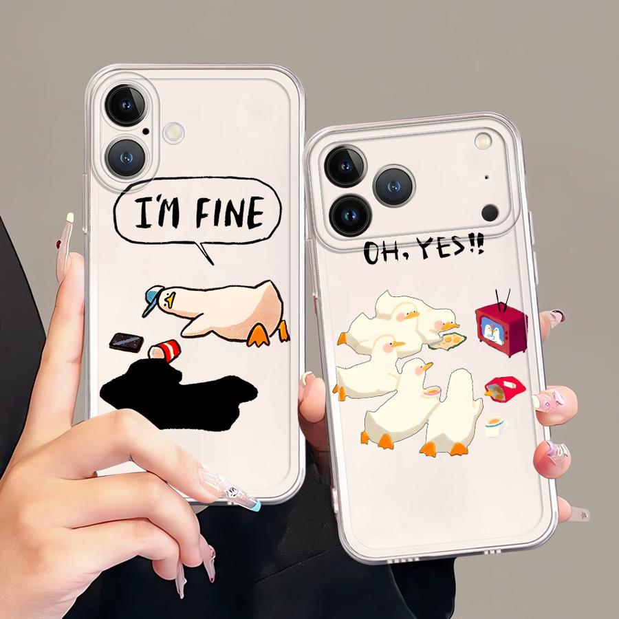 Cartoon Duck Case for iPhone 17 Pro Max XR 11 7 8 16 15 13 Pro 14 Plus XS Max 12 Mini Air Soft Phone Cover