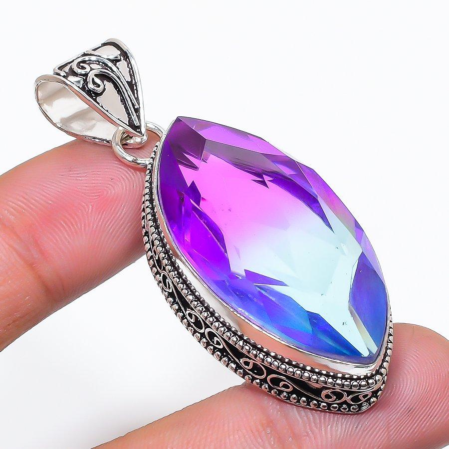 Natural Bi-Color Tourmaline Gemstone 925 Sterling Silver Pendant 2.36" AP-14325