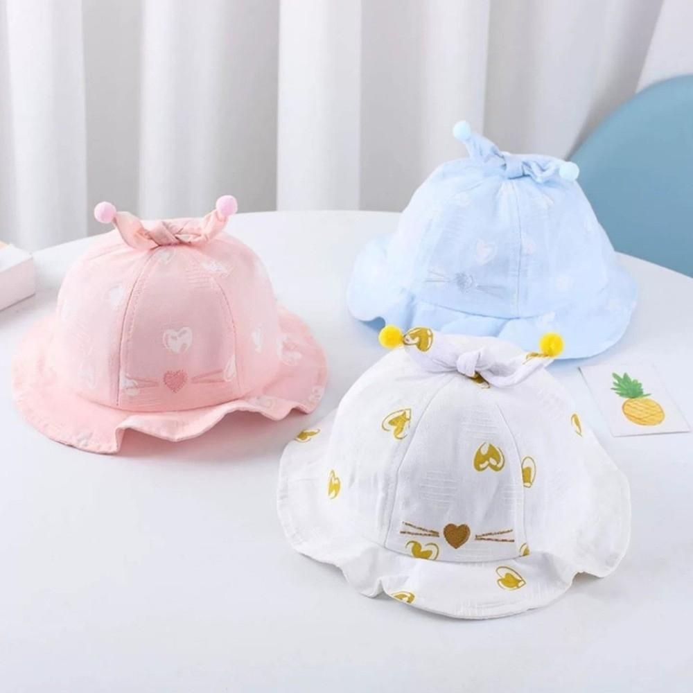 Heart Print Infant Bucket Hat Bow Toddle Fisherman Hat Sweet Baby Sun Hat Girls