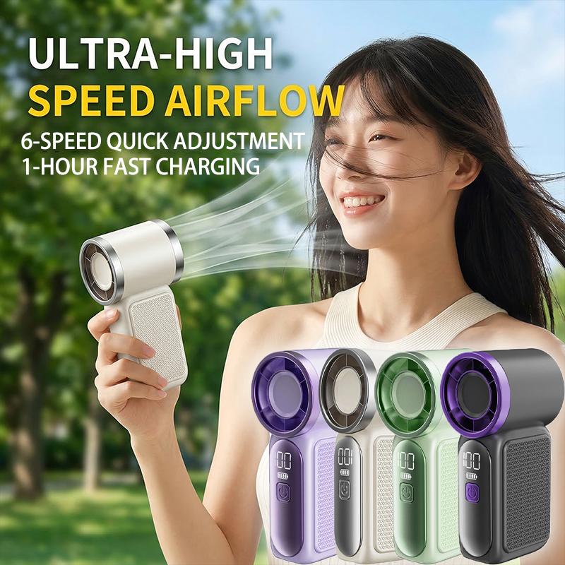 Mini High Speed Handheld Fan 3000mAh LED Display Portable Turbo Fan Desk Fan Outdoor Cooling Rechargeable Fan