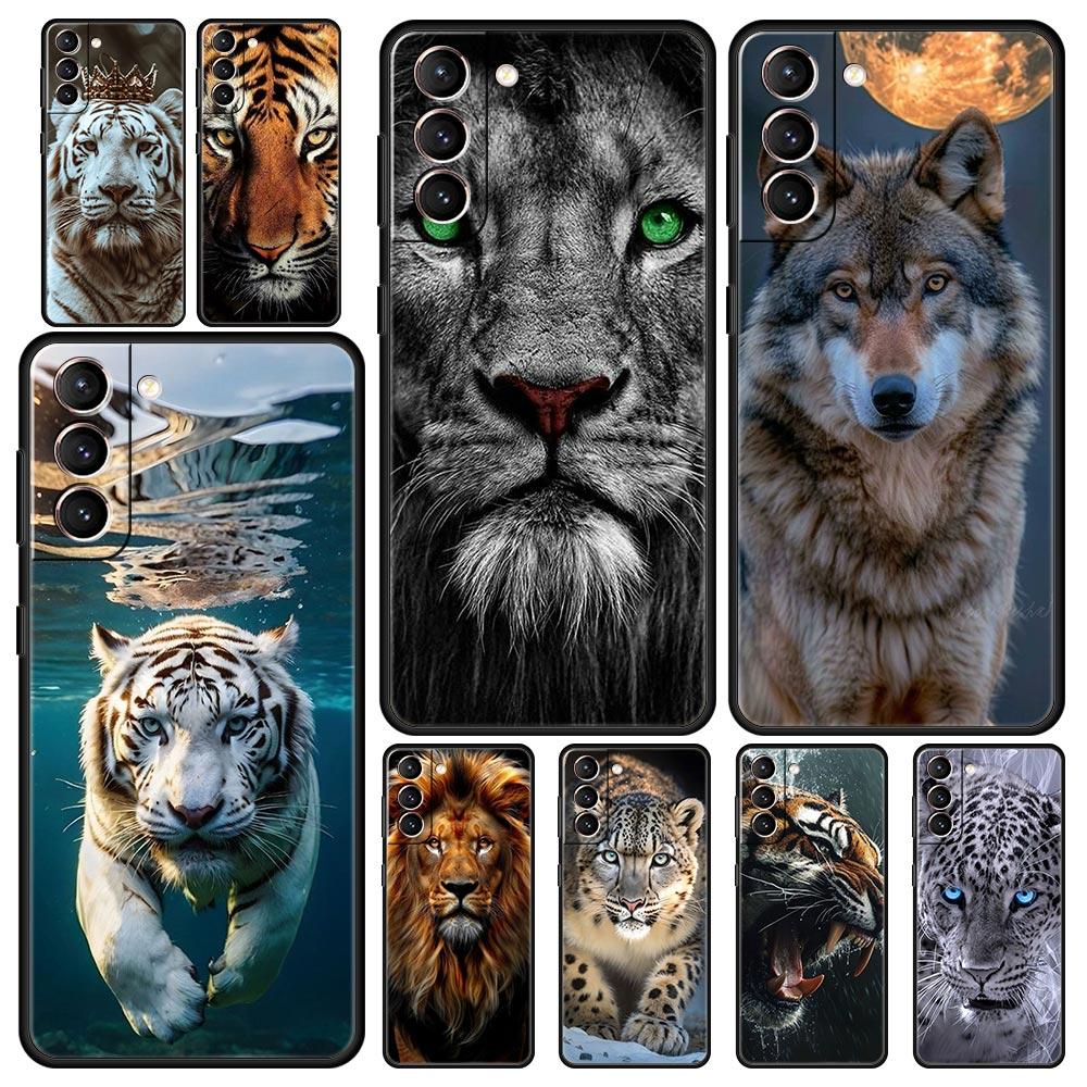 Soft TPU Phone Case For Samsung Galaxy S25 S24 S23 S22 S21 Ultra S20 FE 5G S10 S10E Plus Tigre Wolf Lion Animal Black Cover