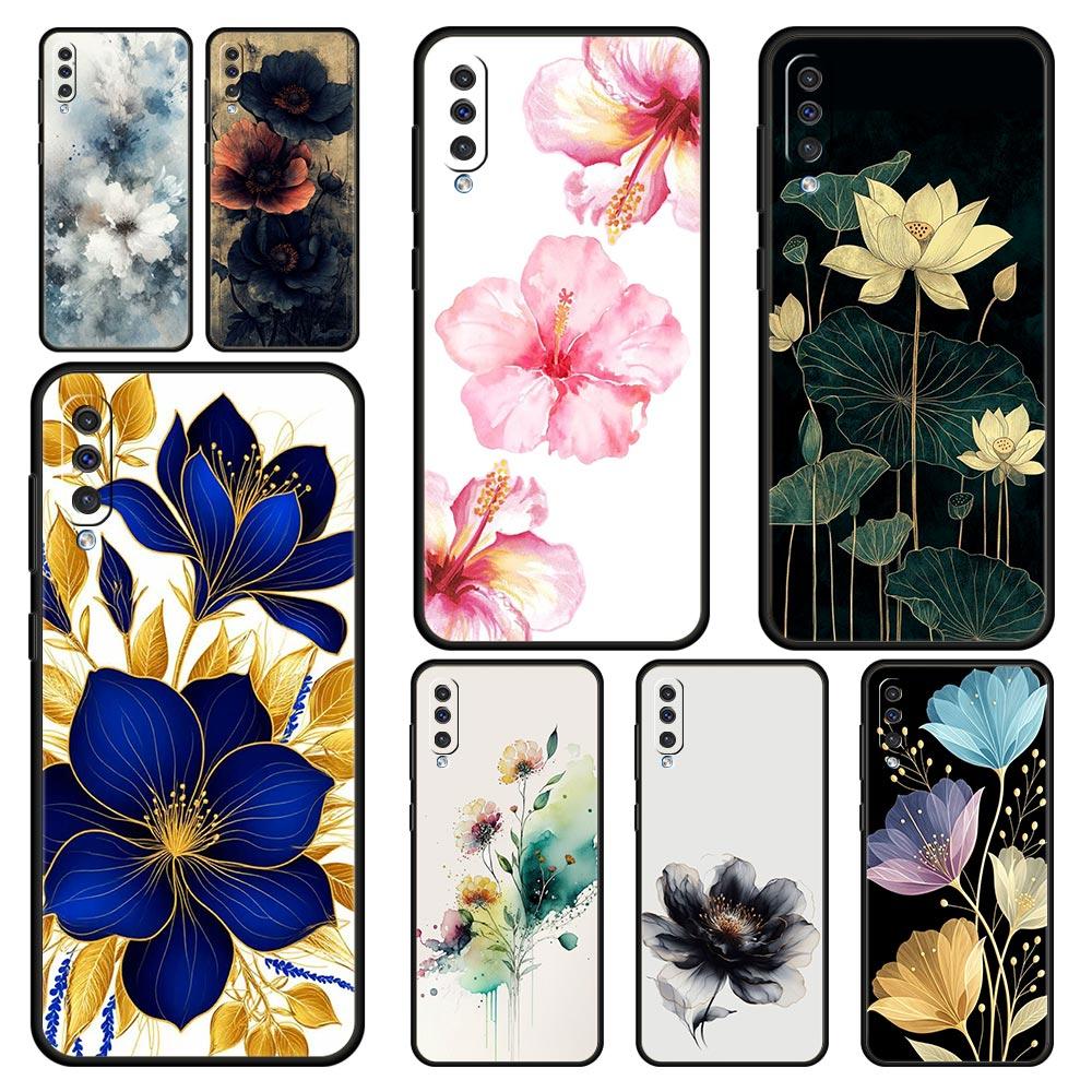 Phone Case For Samsung A56 A36 A26 A24 A12 A14 A16 A50 A70 A20E A10S A22 A40 A34 A54 A42 A52 5G A04s A06 Cover Ink Wash Flower