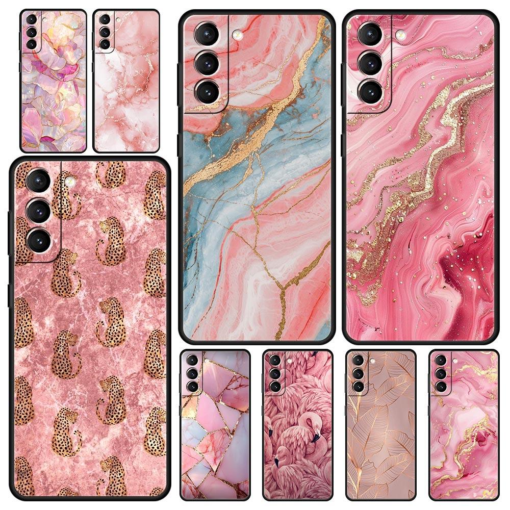 Phone Case For Samsung Galaxy S25 Edge S24 S23 S22 S21 Ultra S20 FE 5G S10 S10E S9 Plus Soft TPU Cover Fashion Gold Pink Marble