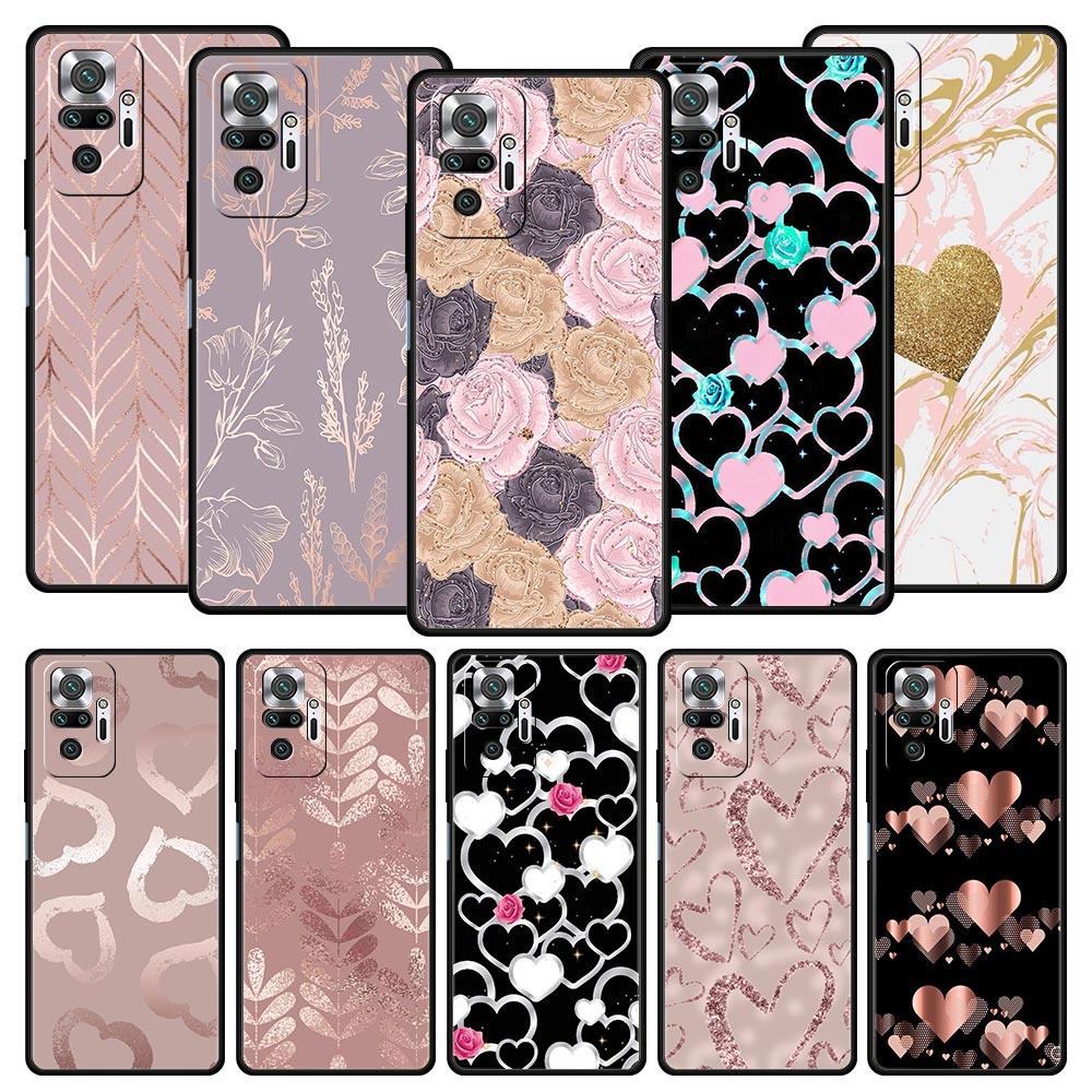Phone Case For Xiaomi Redmi Note 14 13 12 5G 11 10 Pro Plus 4G 9S 9 14C 13C 12C 10C 9C 9A Soft TPU Cover Gold Rose Love Heart