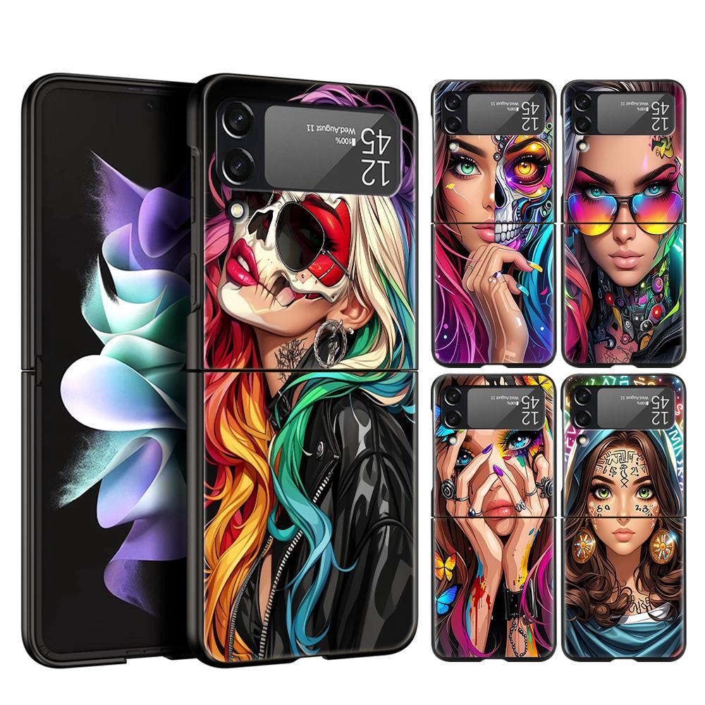 Hard PC Phone Case For Samsung Galaxy Z Flip 7 6 5 4 Black Cover For Galaxy Z Flip 3 Foldable Shockproof Capas Hot Girls Fundas