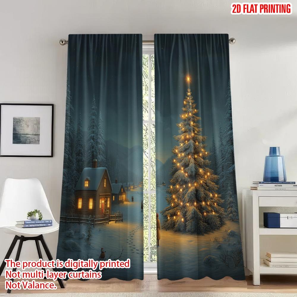 Set Of 2 Flat Printing Merry Christmas Trendy Curtains Cozy Winter Village Tree Digital Printed Polyester Drapes Spring Made