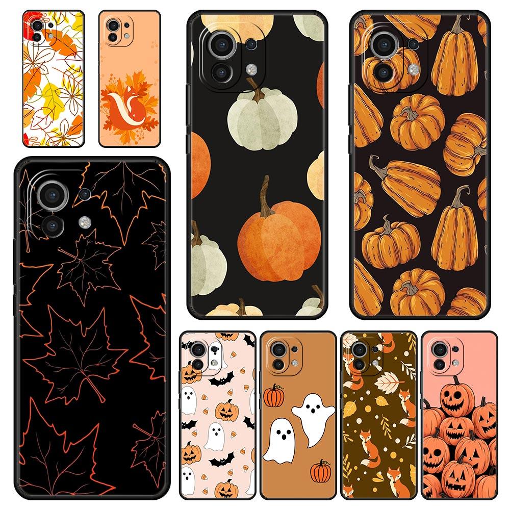 Phone Case For Xiaomi Mi 14 13 12 11 Lite 13T 12T 11x 11T 10T Pro 9T Note 10 Lite Cover Autumn Leaves Fall Fox Pumpkin Halloween