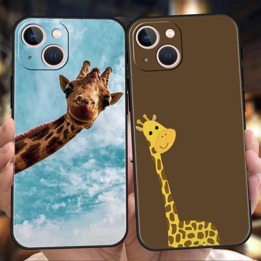 Luxury TPU Soft Phone Case For iPhone 16 11 15 14 Pro MAX 12 13 7 8 Plus X XR XS SE 2022 Black Cover Giraffe Illustration
