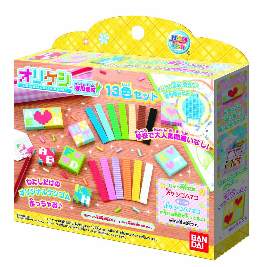 Unleash your creativity with the 13-Color Refill Set for the Eraser Making Toy by BANDAI. This vibrant set includes thirteen different colors, allowing endless possibilities for designing unique erasers. Perfect for expanding the fun and creativity of your existing eraser-making kit. Safe and easy to use, it's ideal for children looking to explore their artistic side.