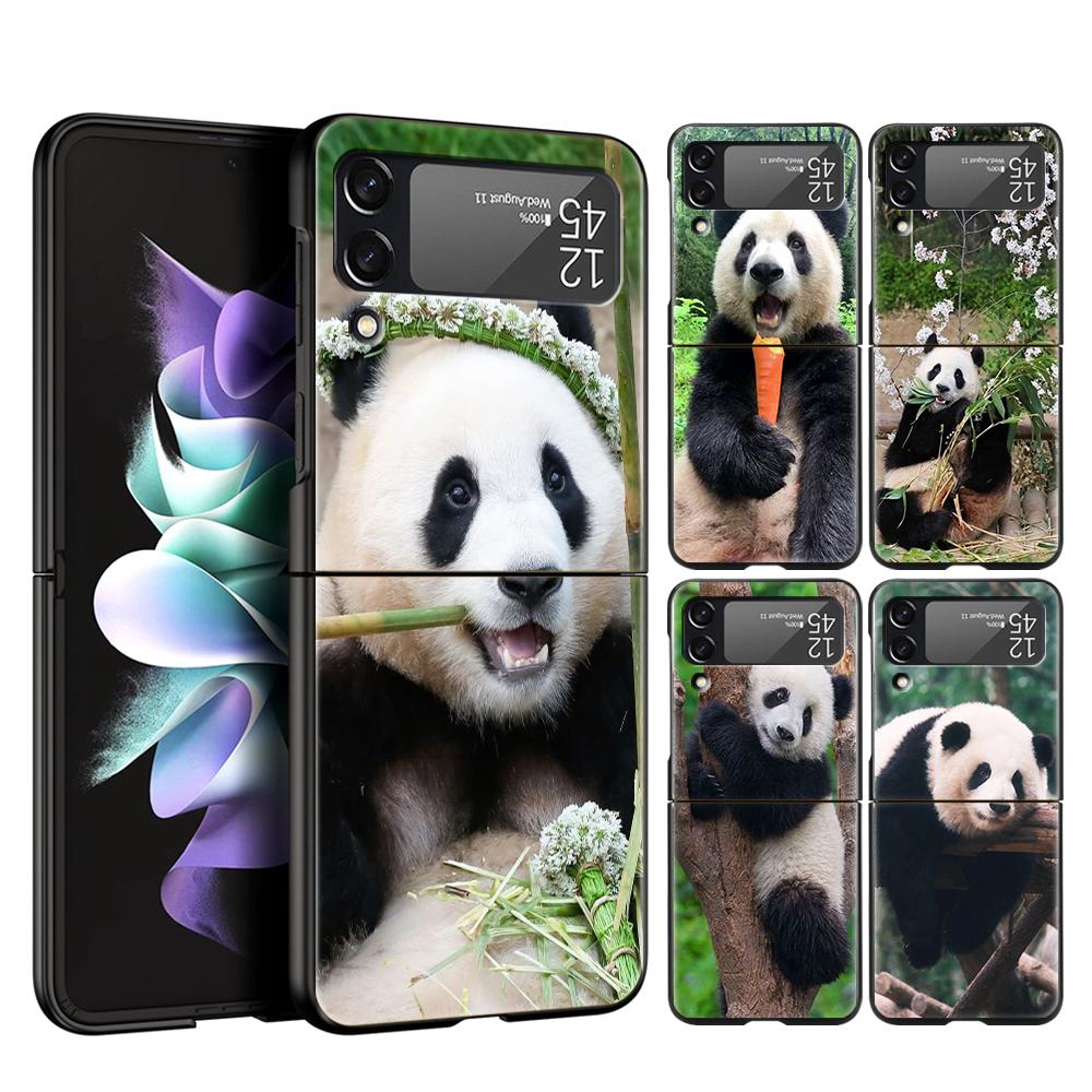 Panda Phone Case For Samsung Galaxy Z Flip 3 4 5 6 7 Hard Black Folding PC For Samsung Z Flip3 Flip4 Flip5 Cover