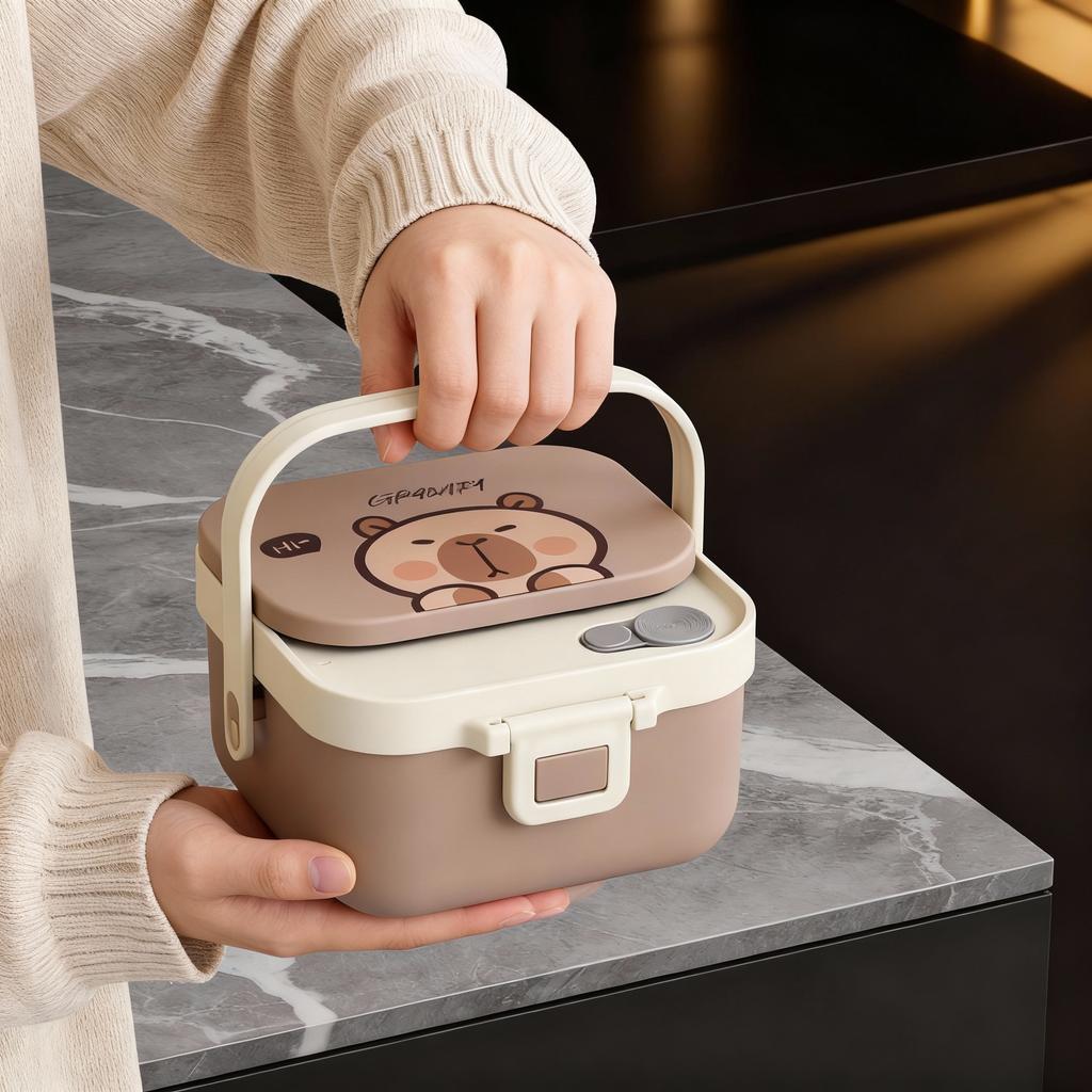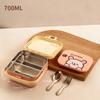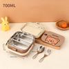 304 Stainless Steel Handheld Lunch Container Leak-proof Cartoon Square Children's Bento Lunch Box With Fork Spoon Microwave Safe