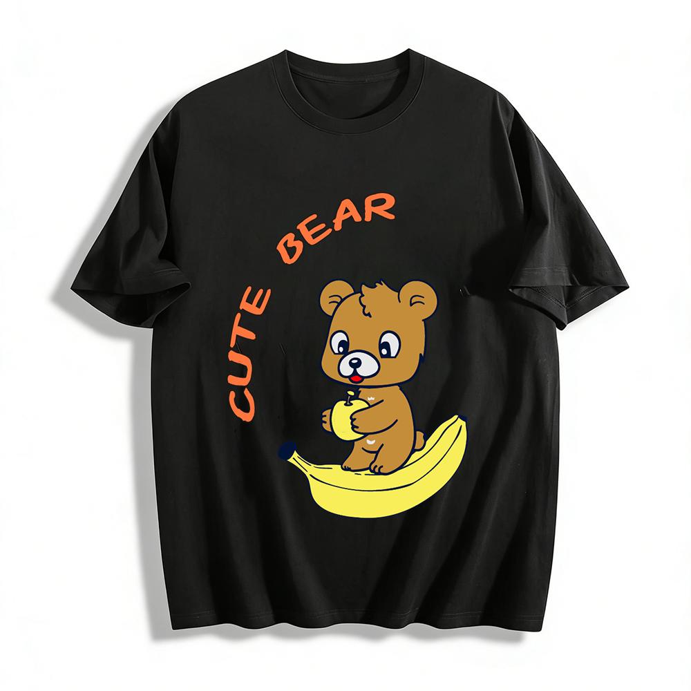 Cute Bear Banana Print Kids T-shirt Boys Girls Casual Breathable Crew Neck Short Sleeve Top Pure Cotton T-shirt