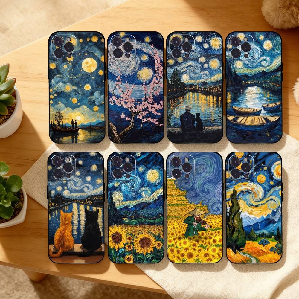 V-Van G-Gogh The Starry Night Phone Case For iPhone17,16,15,14,13,12Plus,Pro Max,XS,5G Soft Silicone Black Cover