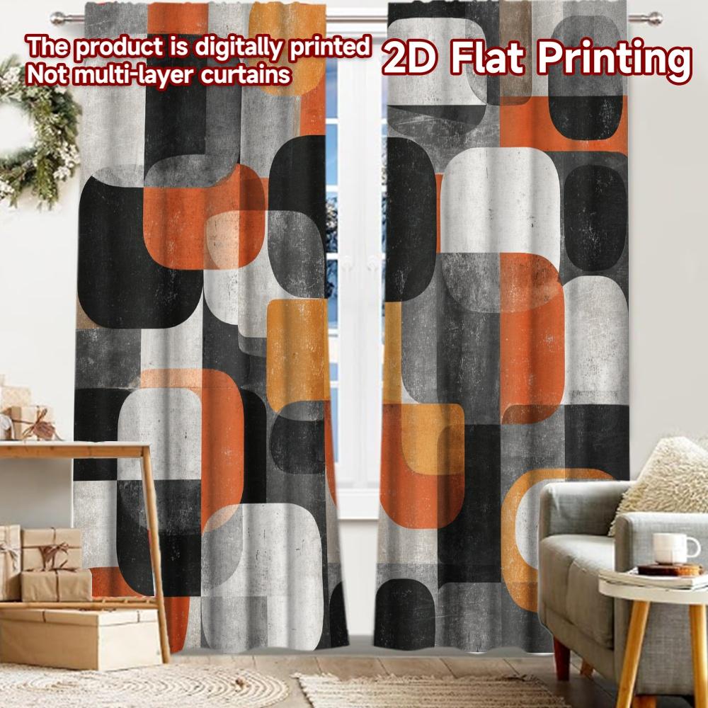 Flat Printing Curtains Without Rod Geometric Flow Festive Fashion Fabric Set Of 2 Made Polyester Machine Washable