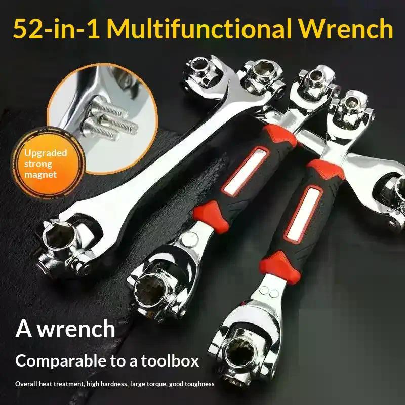 52/48 In 1 Hand Spline Bolts Sleeve Works Multi-Tool Set Universal Ratchet Socket Multipurpose Wrench With 360 Degree Rotation