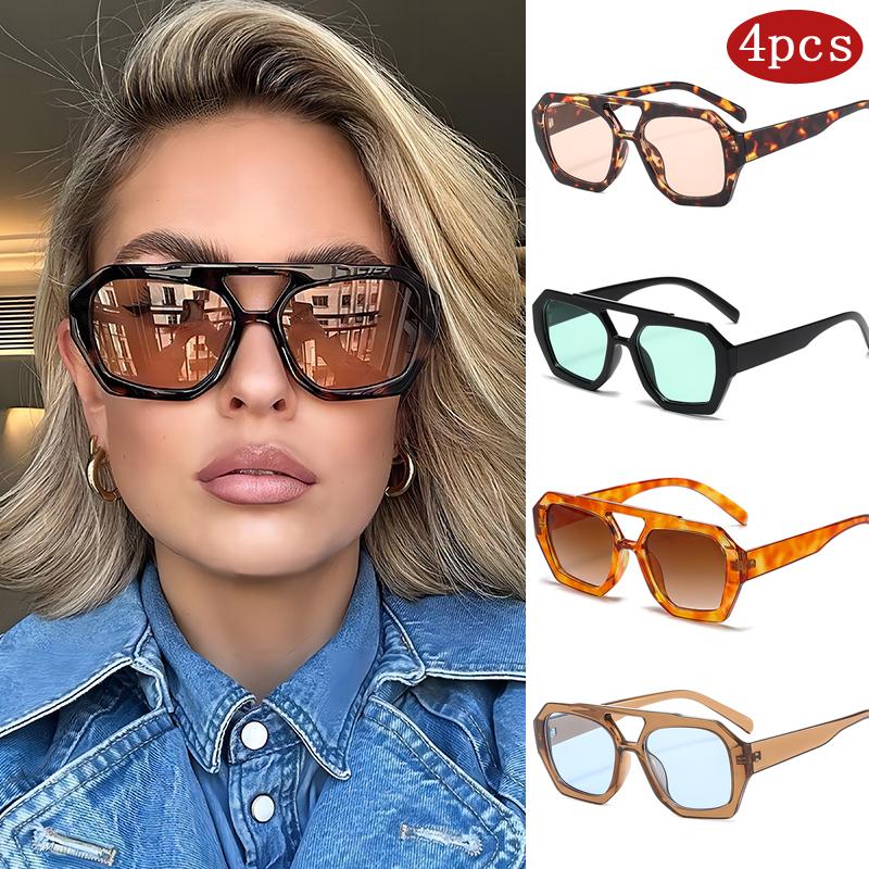 Car Sunglasses 4set Women Oversized Square Sunglasses Fashion Double Bridges Sun Glasses Female Luxury Design Lady Eyewear UV400