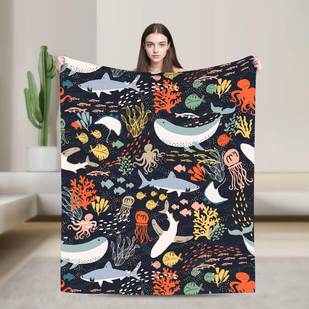 Cute Sharks Blanket Quality Warm Bedding Throws Winter Travel Office Living Room Novelty Bedspread