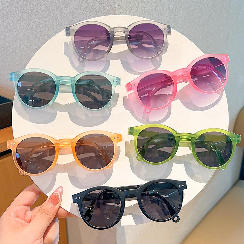 Children's Colored Sunglasses Foldable Round Frame Sun Glasses Boys And Girls UV400 Ultraviolet Eyepiece For Ages 2-8 Years Kid