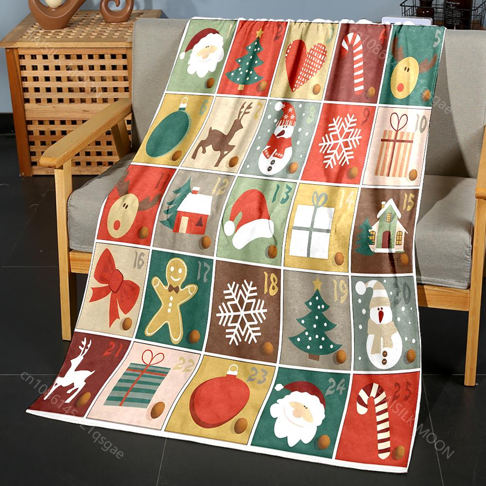 Festive Christmas-themed Illustrated Designs Blanket Flannel Material Soft Warm for All Seasons Home Outdoor Camping Picnics RV