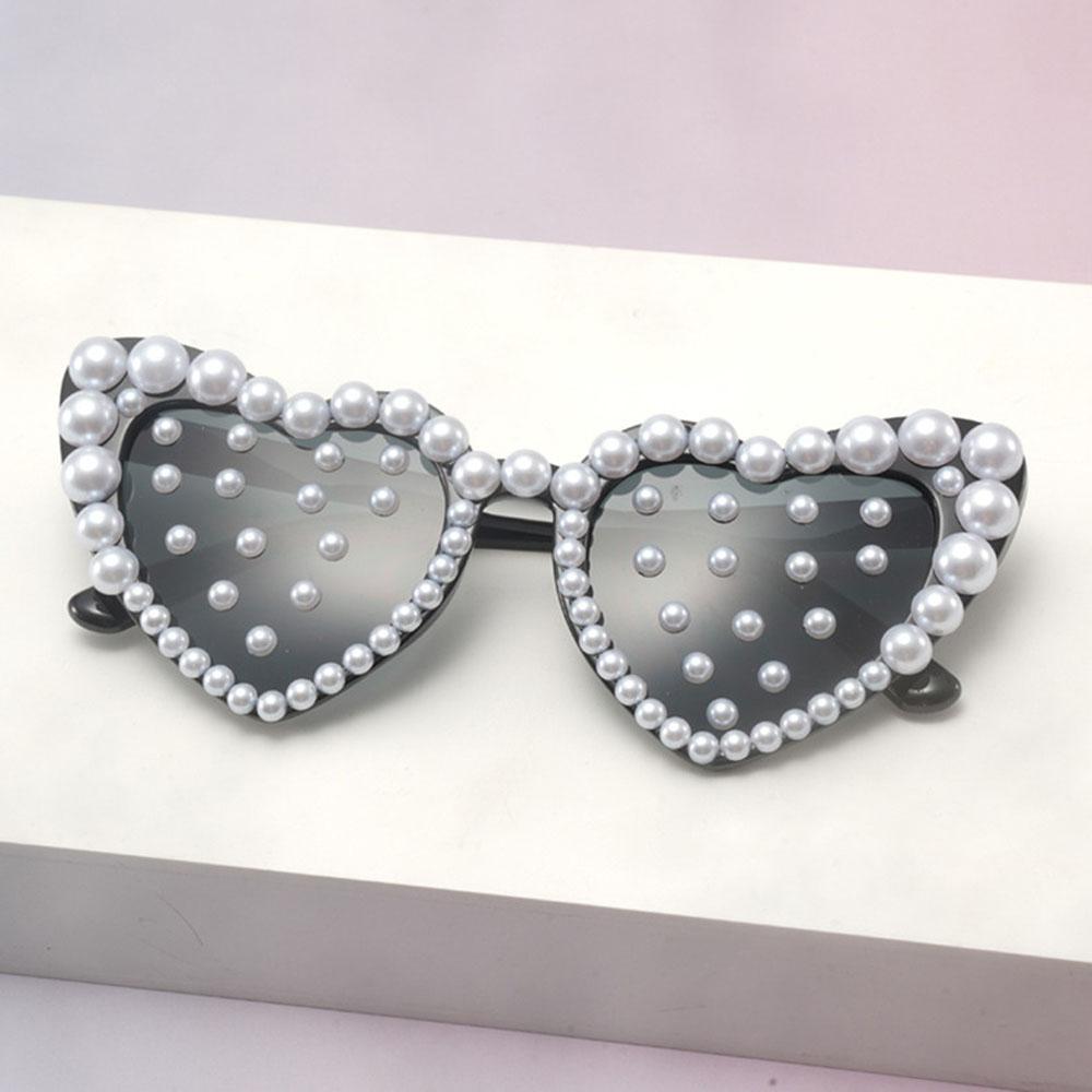 Fashion Sunglasses Fashionable Love Pearl Sunglasses Heart Shaped Sunglasses Anti-Ultraviolet For Party Cycling Outdoor Sports