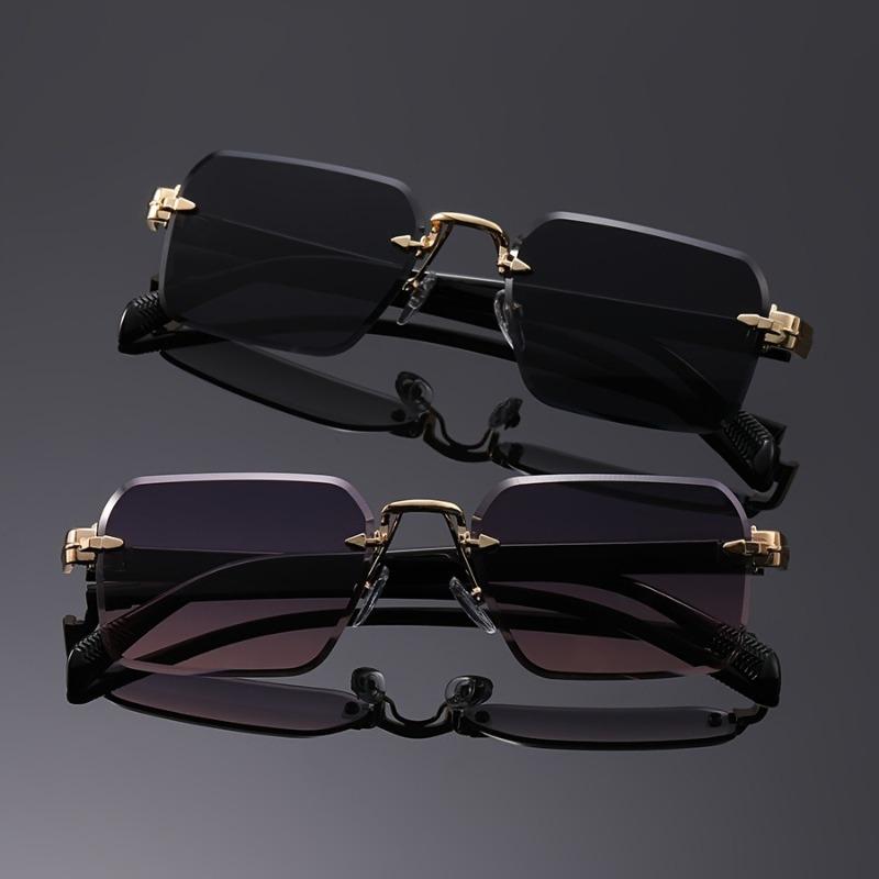 2pcs Set Fashionable Frameless Edge Sun Glasses Styling Street Photography Commuting Glasses Unisex Suitable for All Seasons