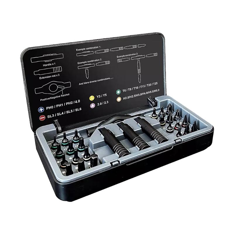 24 in 1 Multi Functional Design : This ratcheting screwdriver set includes 24 commonly used bits, providing versatile solution for various repair needs. Perfect for home maintenance and outdoor activities with quick bit switching capability.