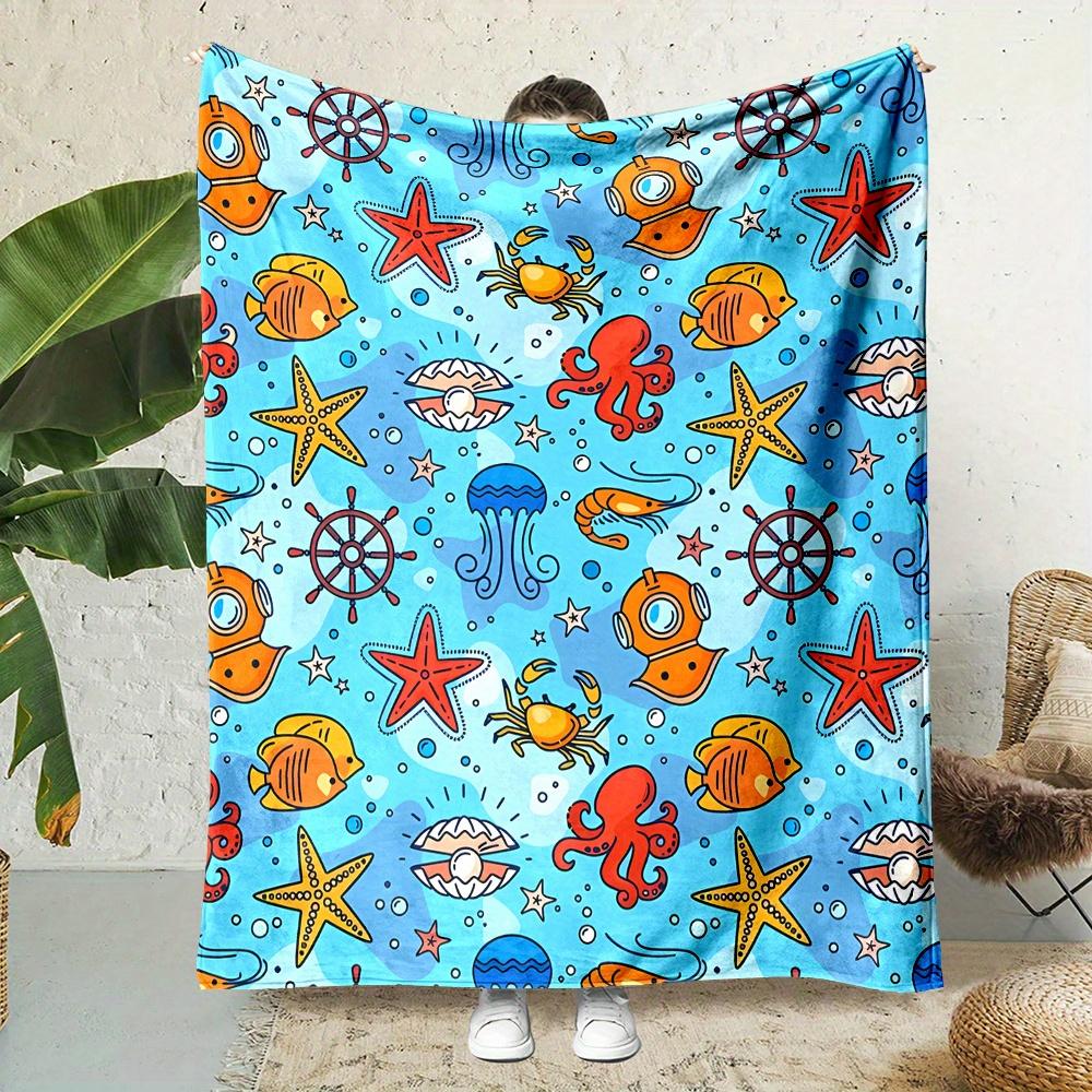 Underwater Adventure Flannel Blanket Reversible Crab Octopus Print AllSeason Softness for Home Office Gift Giving