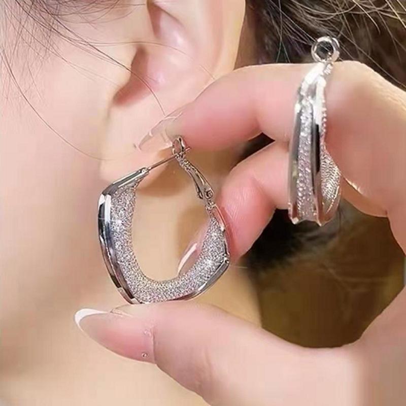 Metal Mesh Crystal Circle Earrings Korean Delicate Elegant High-End Minimalist Luxury Earrings