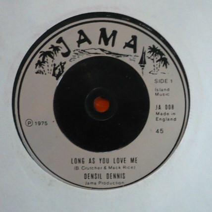 7inch Record DENZIL DENNIS Long As You Love Me JA008 Jama 1975 UK Reggae Ska Dub Used