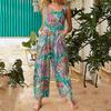 Women's Fashion Casual Loose Back Straps Wide Leg Vintage Printed Jumpsuit