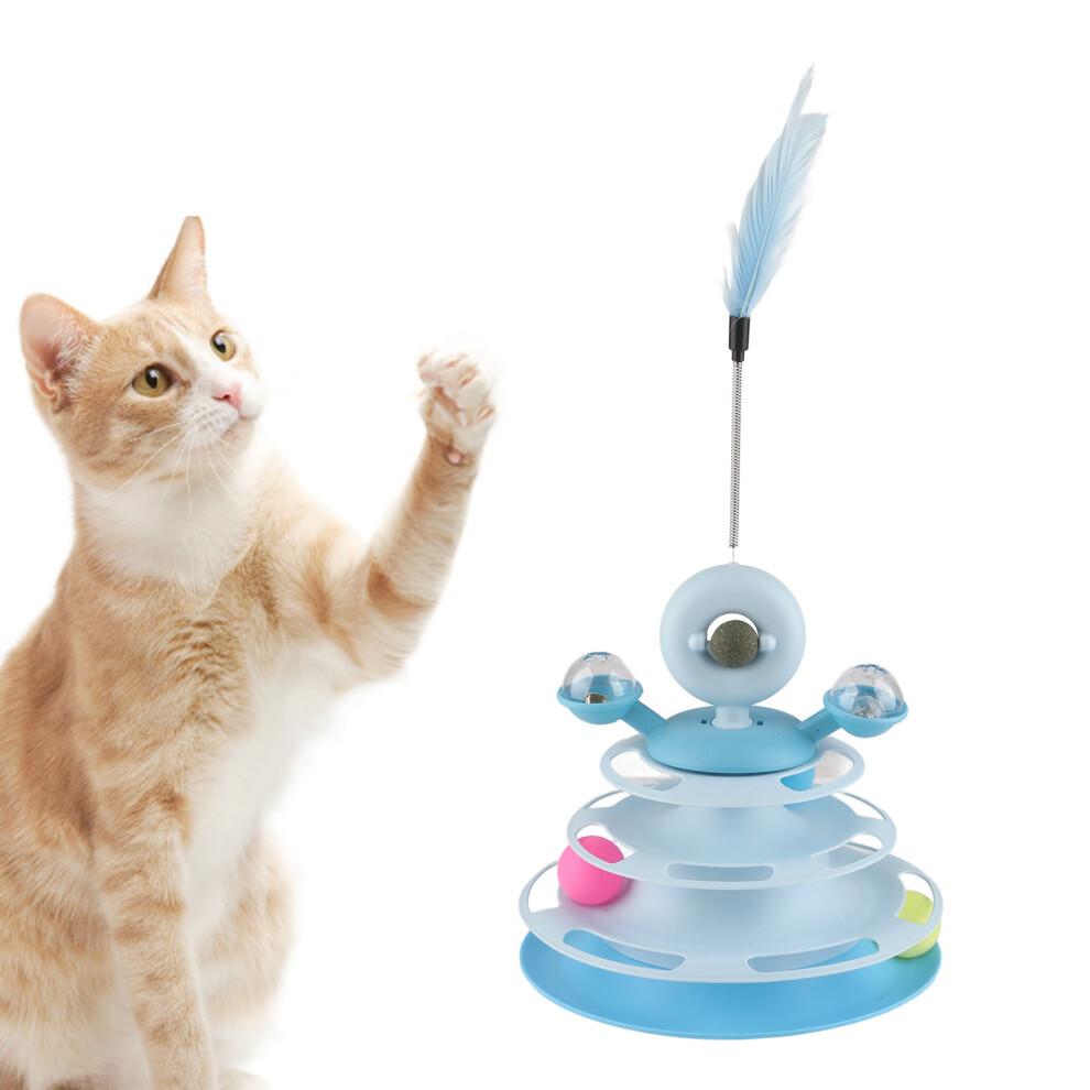 Blue 4-Layer Cat Ball Tower Toy with Feather & Catnip for Exercise