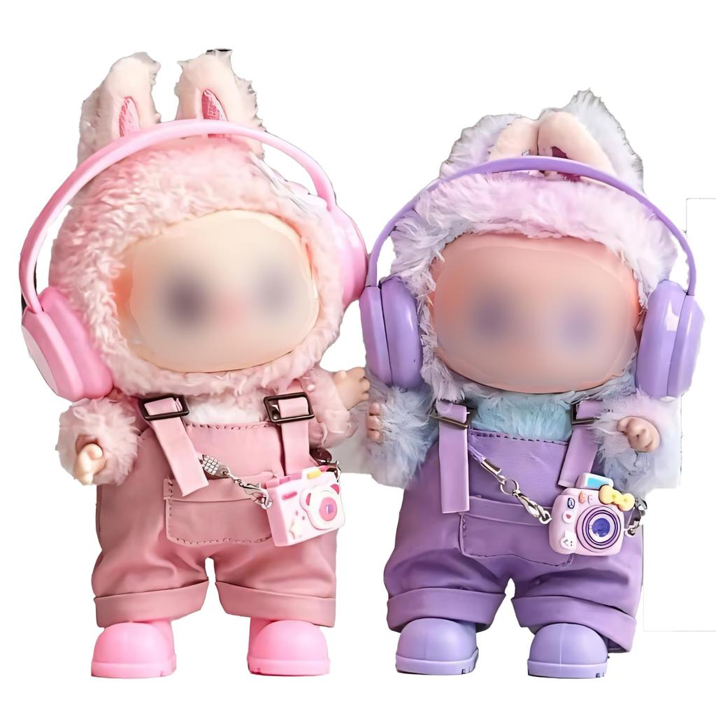 17cm Labubu Doll Clothes Set (4-piece Overalls Set - Purple) Suitable for Labubu Dolls and Plush Toys. Includes Clothes for 1st, 2nd, and 3rd