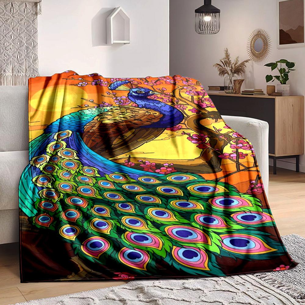 1pc Peacock Feather Blanket Lightweight Flannel Blanket Throw Blanket For Sofa, Bed, Travel, Camping Yy2509026210