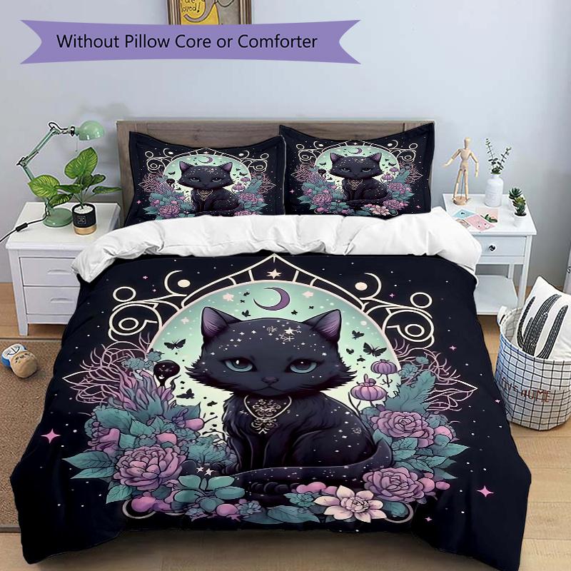 3pcs Witchy Cat Bedding Set, Including 1 Quilt Cover and 2 Pillow Shams, Without Filling, Soft and Comfortable Home Bedroom Fabric, Fashiona
