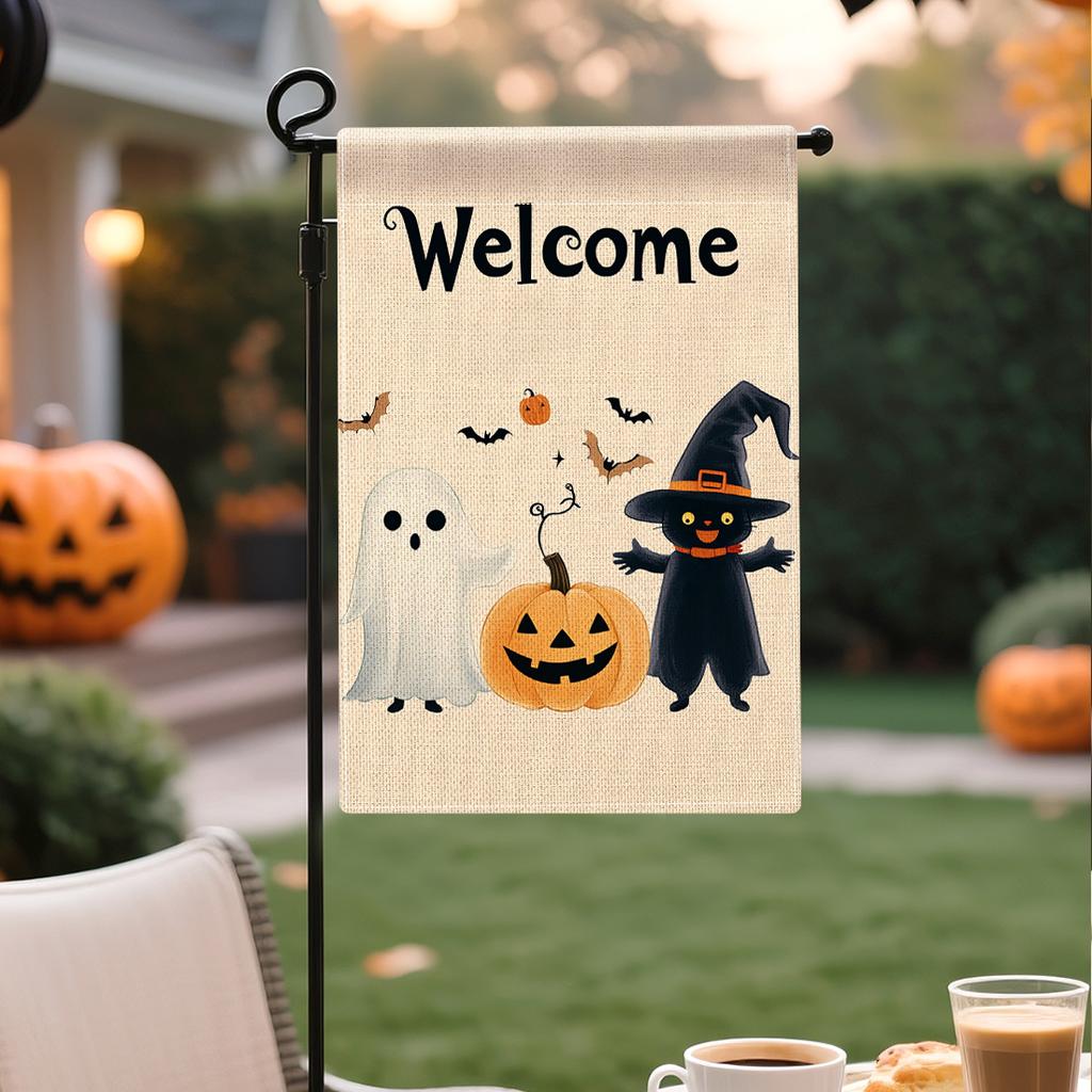 Halloween Garden Flag Pumpkin Ghost Witch Halloween Flags Double Sided Funny Yard Decoration for Outdoor Welcome