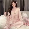בגדי קוואי משי קרח נשים בגדי שינה מידה גדולה שרוול ארוך מכנסיים סטים פיג'מה תחרה סטים לבגדי בית פיג'מות אביב סתיו