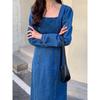 Mishow Women's Denim Dress 2023 Summer New Fashion Vintage Square Collar Puff Sleeve Commuter Loose A-line MXC35L1444