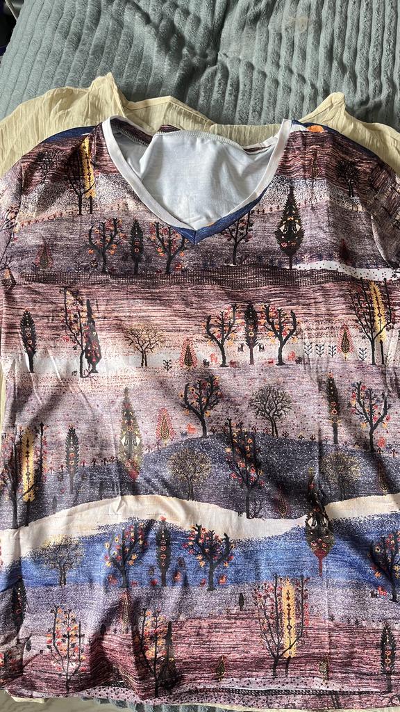 Maglietta estiva da donna con scollo a V e paesaggio, maglietta da donna, moda a maniche corte, retro streetwear, abbigliamento casual femminile