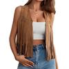 Women's Fashion Suede Buttonless Mid-Length Vest Solid Colour Vest Jacket