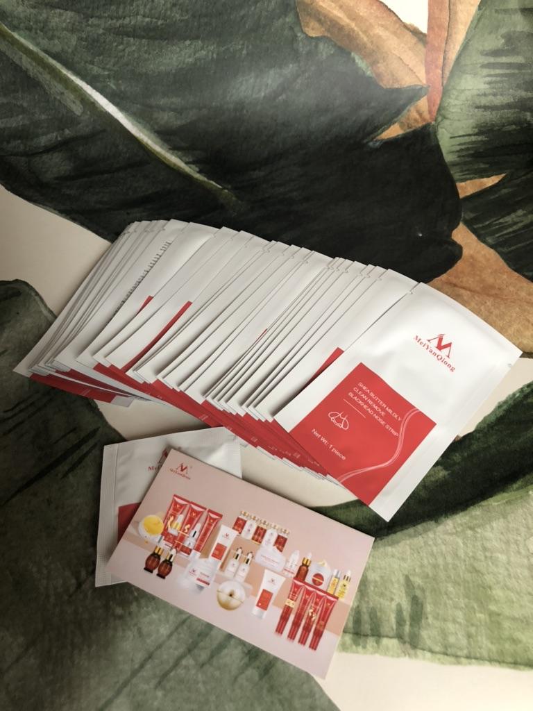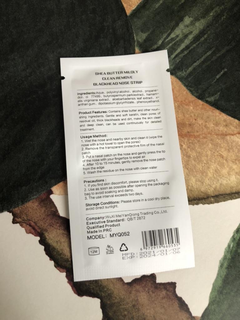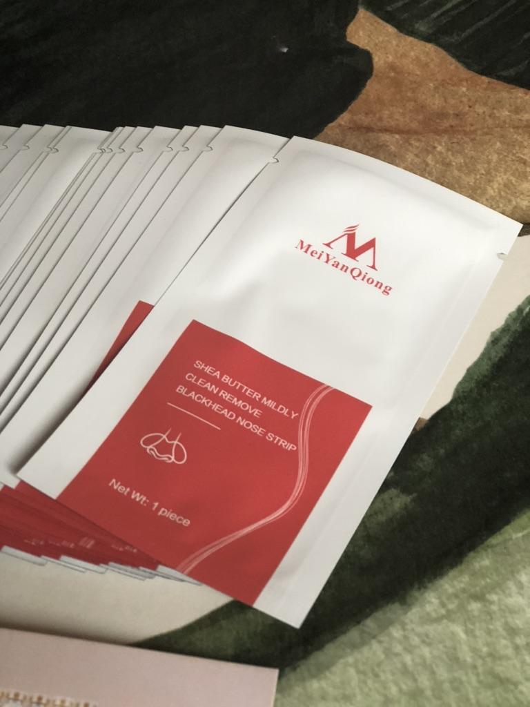 SHEA BUTTER MILDLY CLEAN REMOVE BLACKHEAD NOSE STRIP by MeiYanQiong ! ❤️ Ingredients: Aqua,polyvinyl alcohol,alcohol,propanediol,ci 77499,butyrospermum parkiiextract,hamamelis virginiana extract,aloebarbadensis leaf extract,xanthan gum,dipotassium glycyrrhizate,phenoxyethanol. Usage Method: 1.Wet the nose and nearby skin and clean it (wipe the nose with a hot towel to open the pores) 2.Remove the transparent protective film of the nasal patch 3.Put a nasal patch on the nose and gently press the tip of the nose with your fingertips to expel air 4.After 10 to 15 minutes, gently remove the nose patch from the edge 5.Wash the residue on the nose with clean water Delivery took one month to come to Greece. 🇬🇷 Easy to take it with you! Also the seller added some free cream samples for gift! 100% recommendable 💯 Love it ! ❤️ Thank you & Love you MeiYanQiong and Joom ! ❤