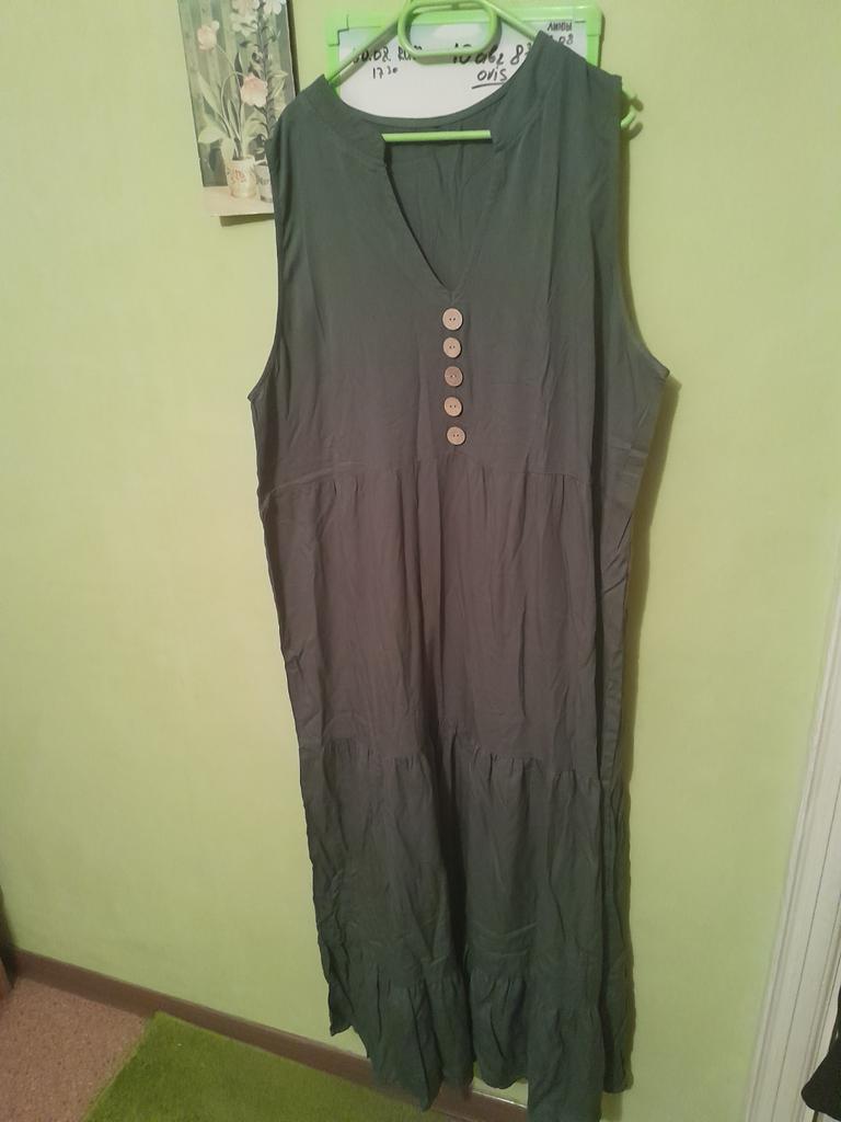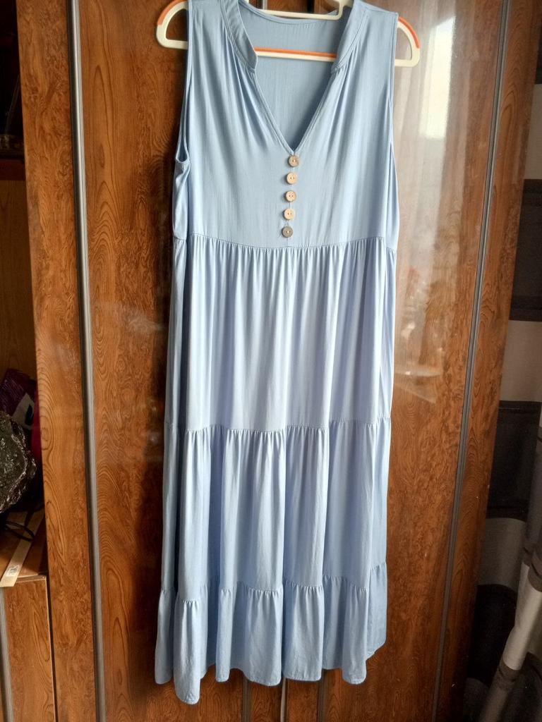 YYFS ქალთა მოდა საზაფხულო საგაზაფხულო სოლიდური პრინტით უსახელო V-კისრის ჩვეულებრივი კაბები