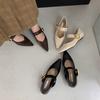 Sheepskin version pointed leather Mary Jane single shoes retro low heel versatile flat shoes