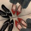 Pointed flat bottom banquet rhinestone spring temperament shallow mouth French soft sole 2025 single shoe inner height increase new elegance
