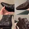 Leather Vintage Pointed V Boots Women's French Thick Heel Skinny Back Zipper Western Boots 2025 Martin Boots.